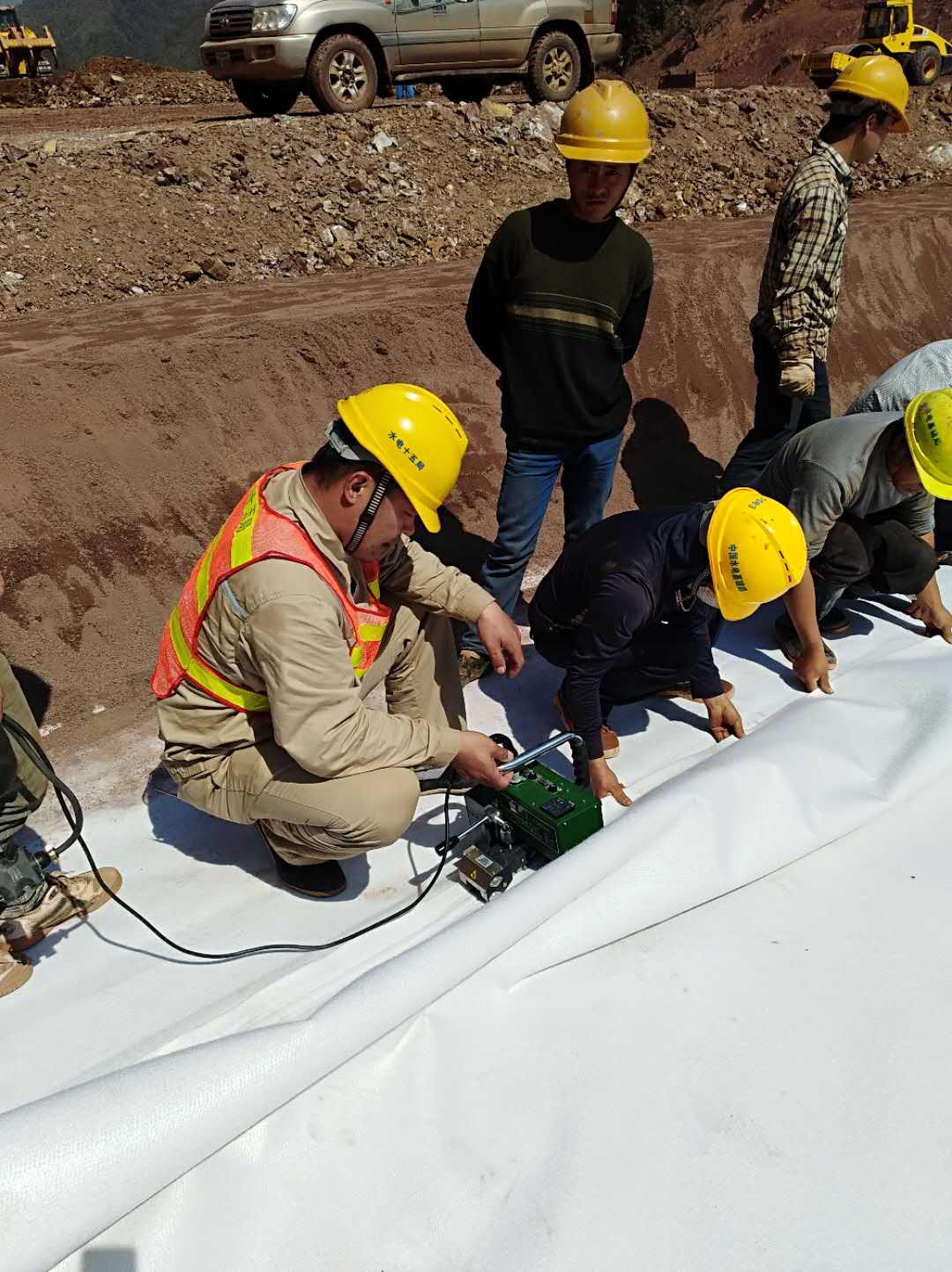复合土工膜铺设。每次采购复合土工膜的性能指标均应通过试验检测,确保达到设计要求。在复合土工膜铺设前,防洪堤坡面修整完毕,坡面平整度、压实度均达到设计要求并经监理工程师验收合格后方可进行复合土工膜的铺设。
