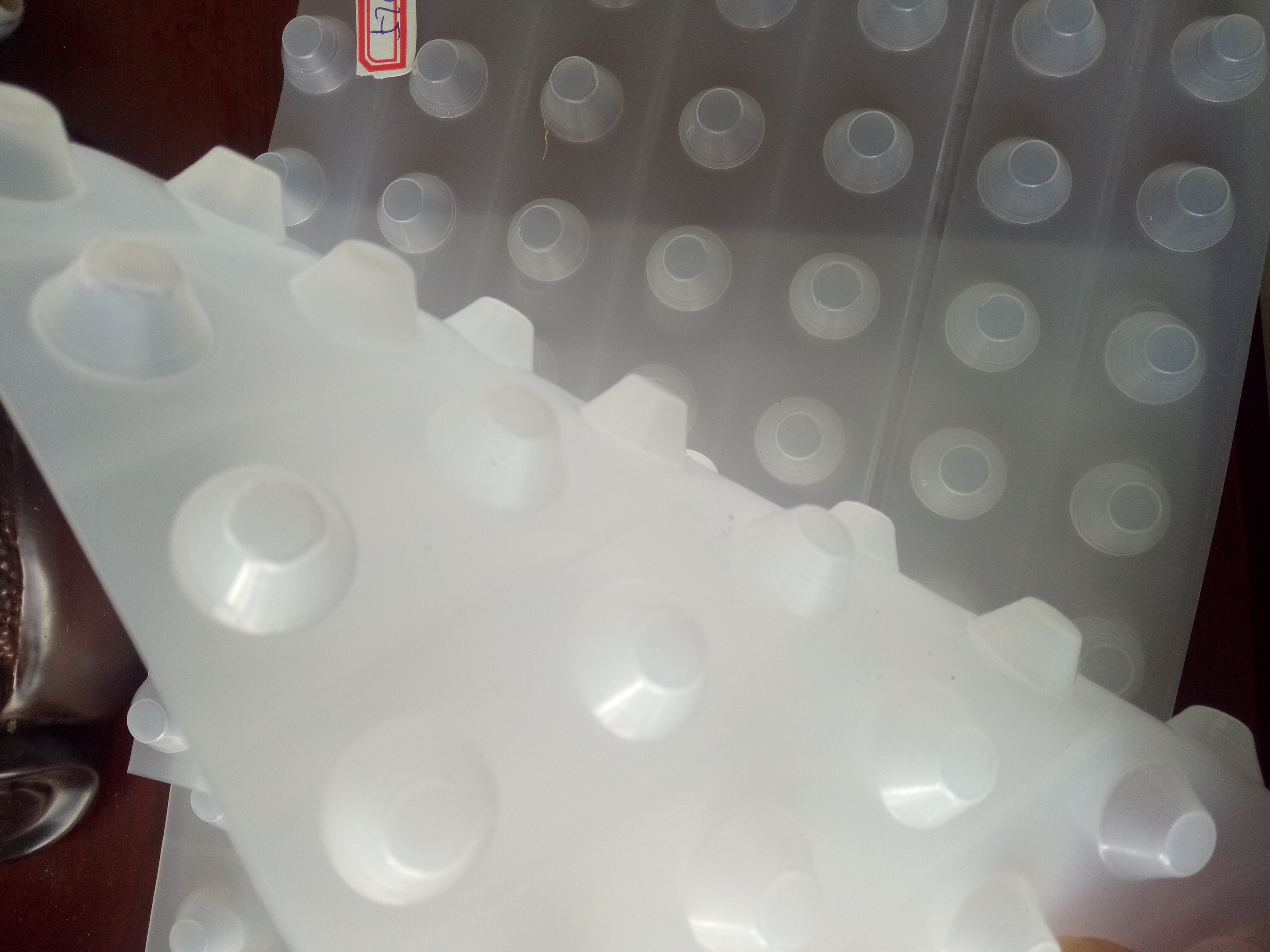塑料排水板是由聚苯乙烯(HIPS)或者是聚乙烯(HDPE)为原料塑胶底板经过冲压制成圆锥突台或者加劲肋的凸点(或中空圆柱形多孔)而成,经过不断的创新研发原料得到巨大提升和变更,现由聚氯乙烯(PVC)为原料压制而成,抗压强度和整体平整度得到大幅度的提升,幅宽有1~3米,长度有4~10米或者以上。