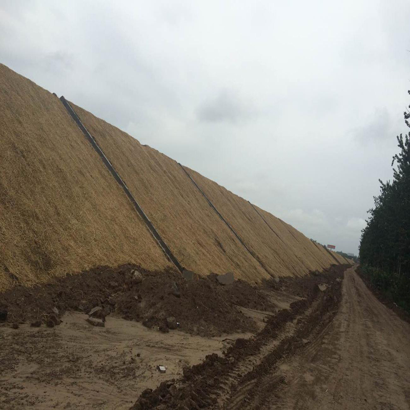 植物纤维毯也称植被毯、植生毯、环保草毯、椰丝毯等,植物纤维毯是以椰丝或农作物稻、麦秸秆为原材料,通过锡林、开松、双面加固网、缝纫加工做成的供植物生长的被状绿化毯,是一种通过复合洐缝工艺加工而成的新型可降解毯状材料。植物纤维毯施工工艺简单、施工成本底、施工速度快,是大规模边坡防护绿化及快速建草坪的理想选择。产品分为带草籽和不带草籽植物纤维毯两种,不带草籽是三层结构,上、下层为PP加筋网(也可用麻网加筋),中间层为植物纤维(稻、麦秸秆或椰丝);带草籽的有六层结构,上下层为PP护网(也可用麻网加筋),中间层为植物纤维(稻、麦秸秆或椰丝),中间层下面是草籽层,草籽被无纺布或专用纸上下均匀包裹。产品呈多层网孔状结构,是一种稳固边坡,植被绿化的生态植物纤维毯,可以根据需要加以肥料、营养剂、各类草种等,这样的材质和结构为植物的生长提供了良好的条件。