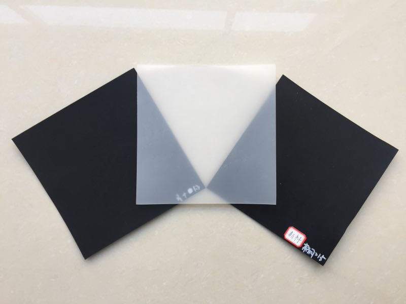 土工膜以塑料薄膜作为防渗基材,与无纺布复合而成的土工防渗材料,新材料土工膜它的防渗性能主要取决于塑料薄膜的防渗性能。目前,国内外防渗应用的塑料薄膜,主要有聚氯乙烯(PVC)和聚乙烯(PE)、EVA(乙烯/醋酸乙烯共聚物),隧道应用中还有设计使用ECB(乙烯乙酸乙烯改性沥青共混土工膜)的,它们是一种高分子化学柔性材料,比重较小,延伸性较强,适应变形能力高,耐腐蚀,耐低温,抗冻性能好。